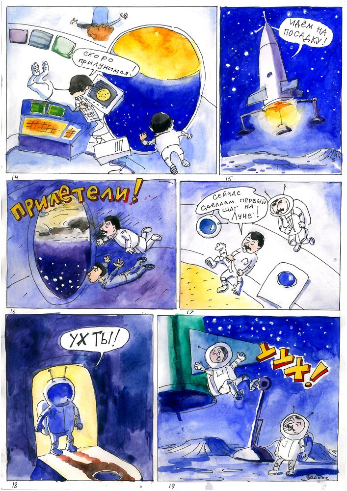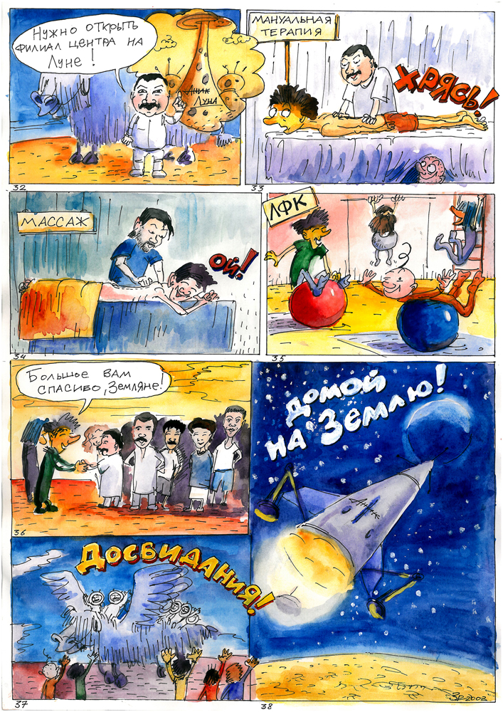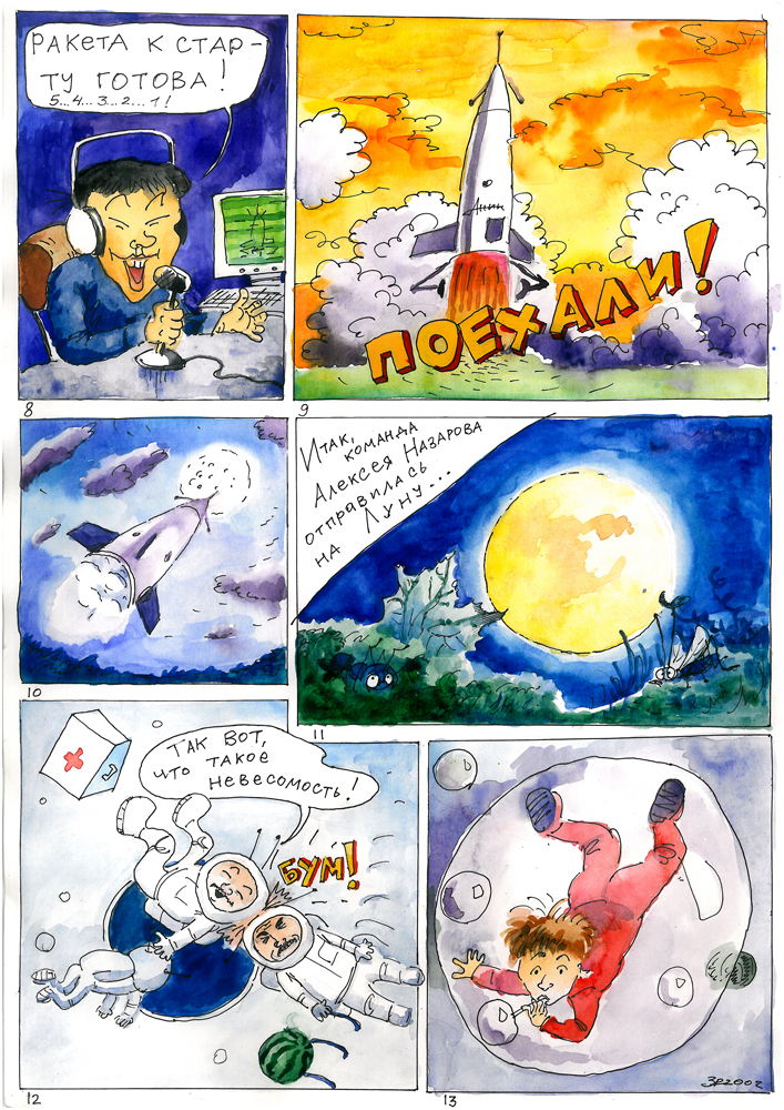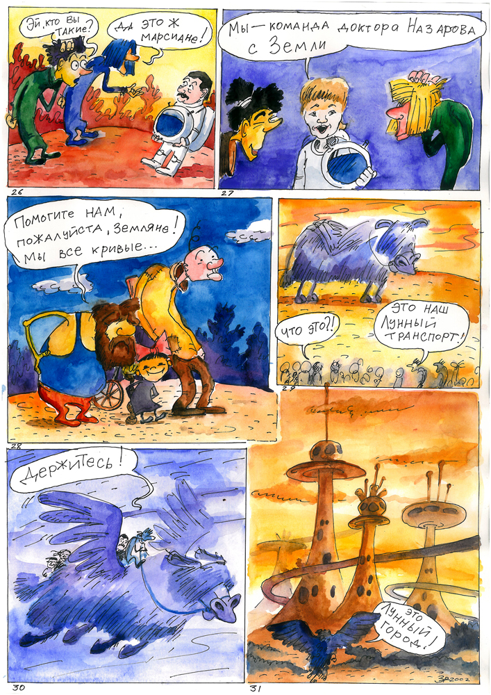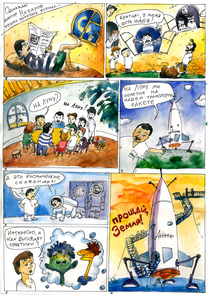 Роман Захаров (1990 г.р.) — молодой художник из Алма- аты. Эти комиксы были нарисованы и любезно подарены Центру «АНиК», когда Роман был еще совсем юн.